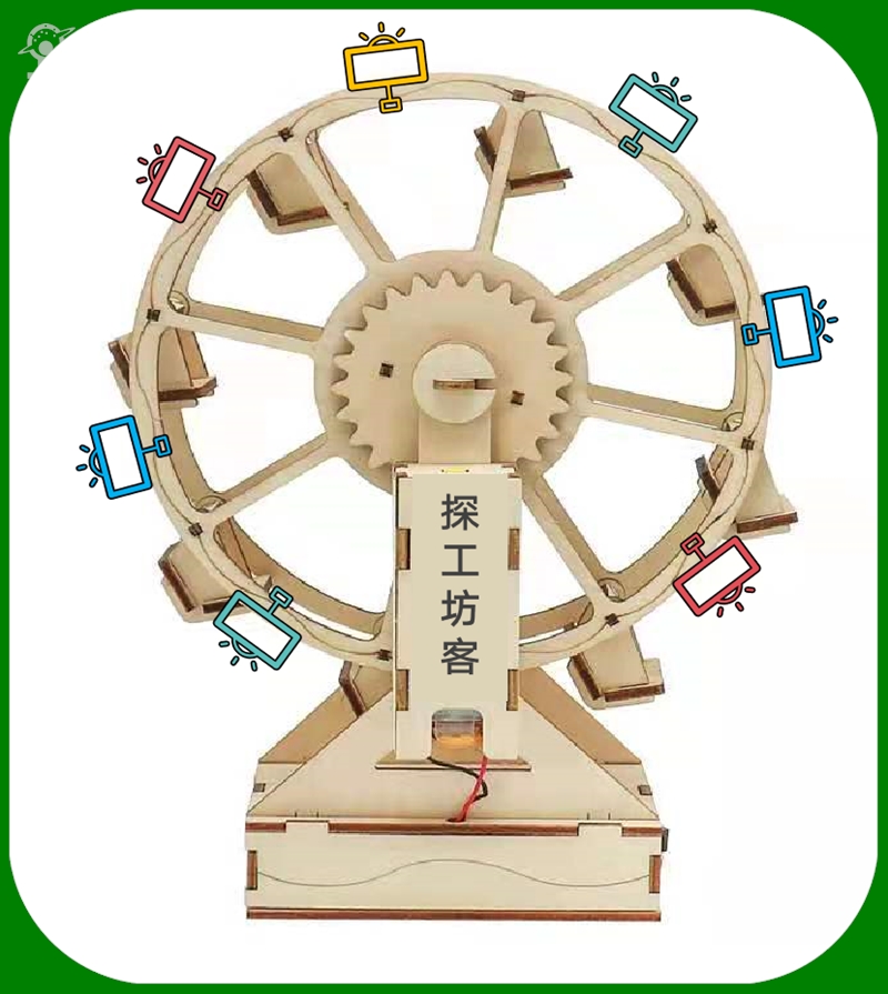 在“3D炫彩摩天轮”这节课里,我们将带领小探客们领略世界各地摩天轮的风光并自己搭建一个360度旋转且闪闪发光的摩天轮。在本节课里,孩子们将学习到齿轮传动,减速电机、并联电路等物理学知识。拿上你的小摩天轮,带回家让爸爸妈妈一同欣赏美景吧!