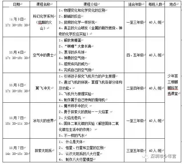 深圳市少年宫自10月26日起,于每周二发布当周课程计划并接受市民为孩子预约。(课程灵活机动,安排在周三至周日的课后时段)。