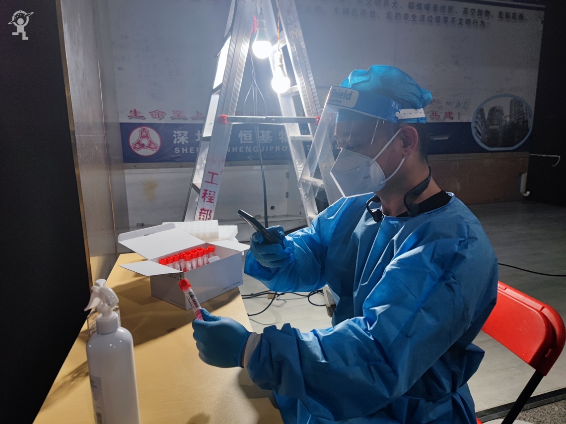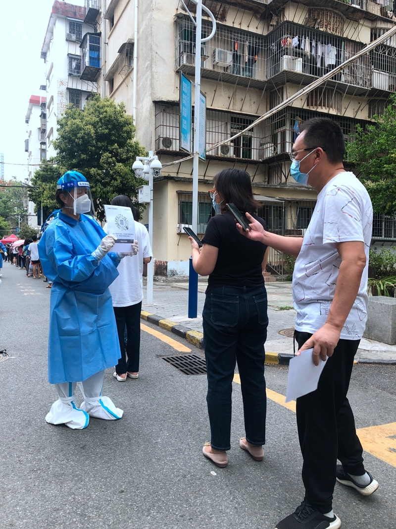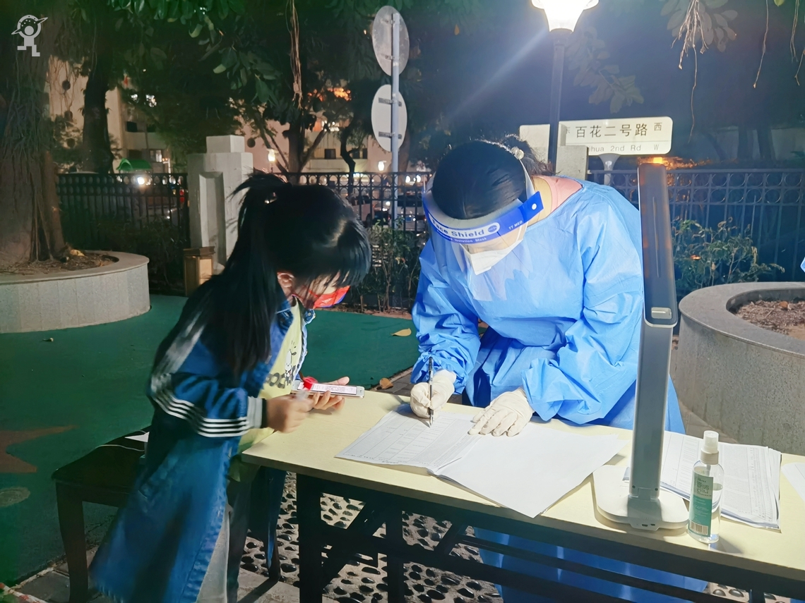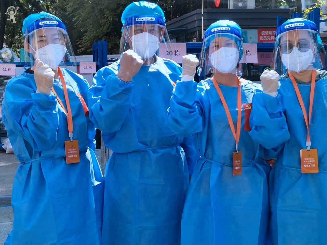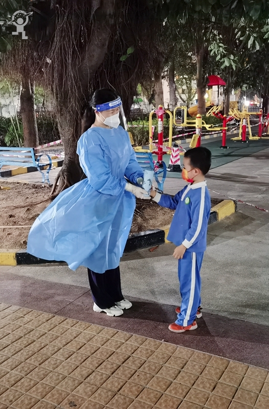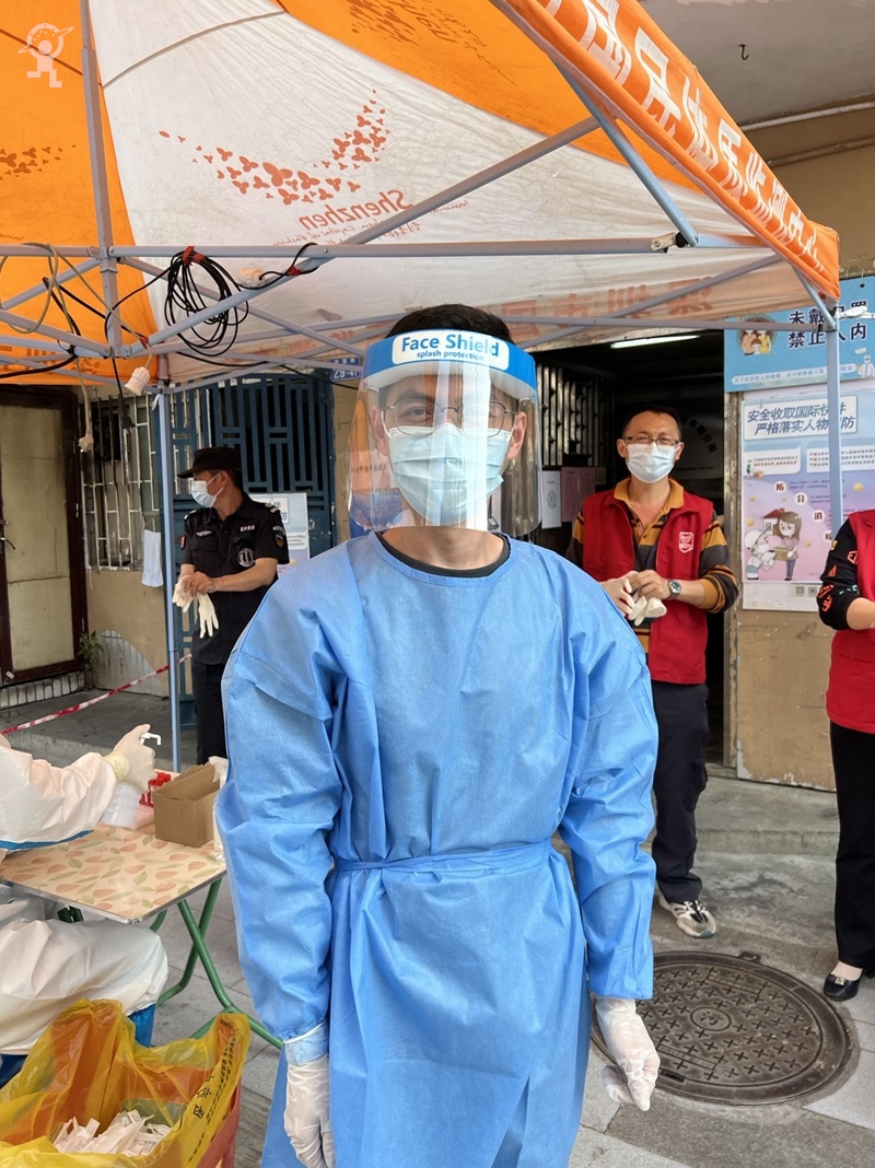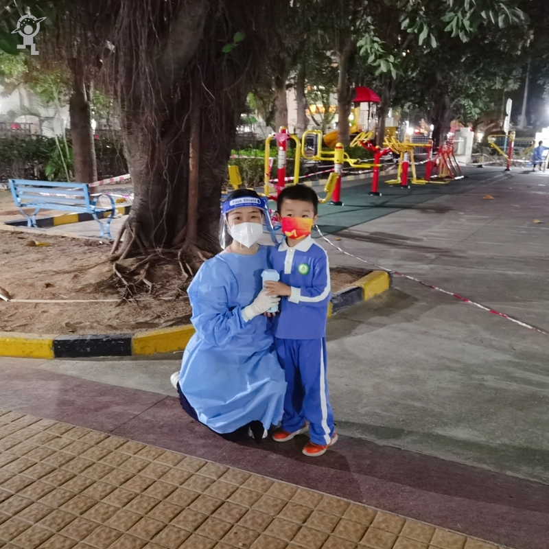 在全市各行业纷纷支援战疫一线之际,团市委统一行动、协同作战。市少年宫张孜慧与先生都在团市委系统工作,先生代表深圳市青少年活动中心组建无人机青年战疫突击队,用专业科技力量支援社区战疫;她则代表少年宫派驻支援福田疫情防控联络服务组,同时下沉长城社区参加一线抗疫检测核酸工作,因先生带飞手参加抗疫,家中帮忙的阿姨也被隔离了,张老师只能带着孩子一起参加抗疫行动。全家出动,一起加油,践行最好的言传身教。一家人最大的期盼就是:深圳早日清零,春暖花开。