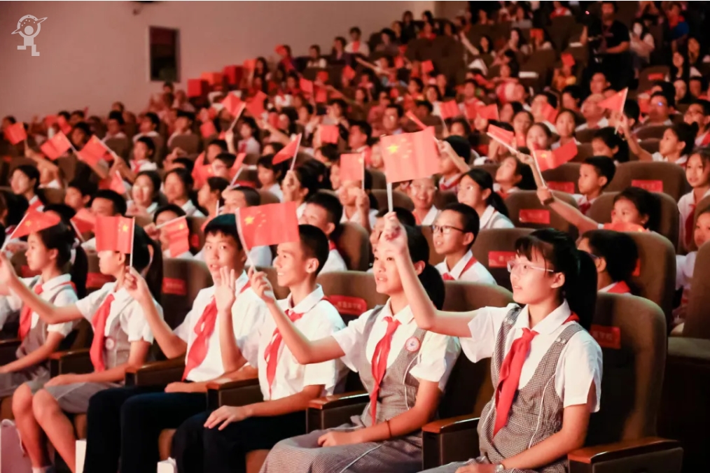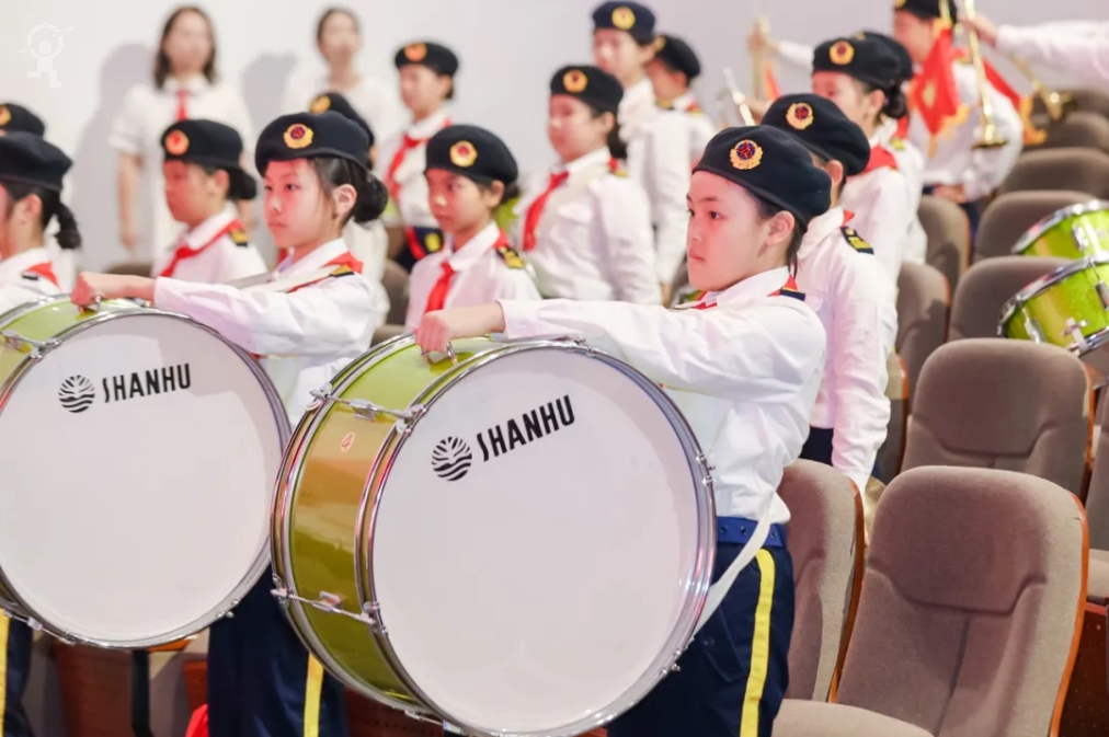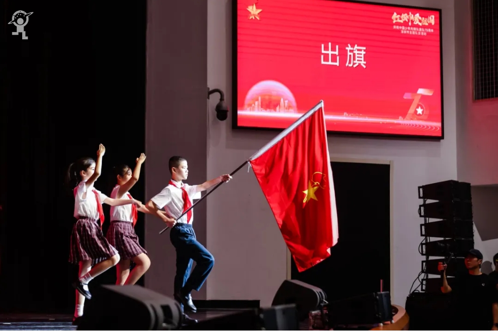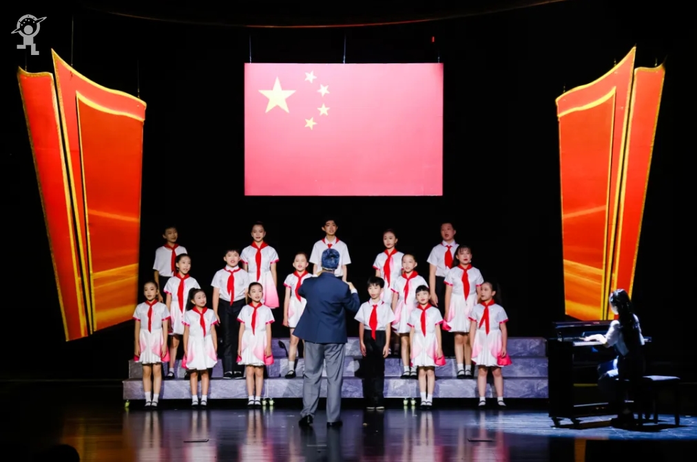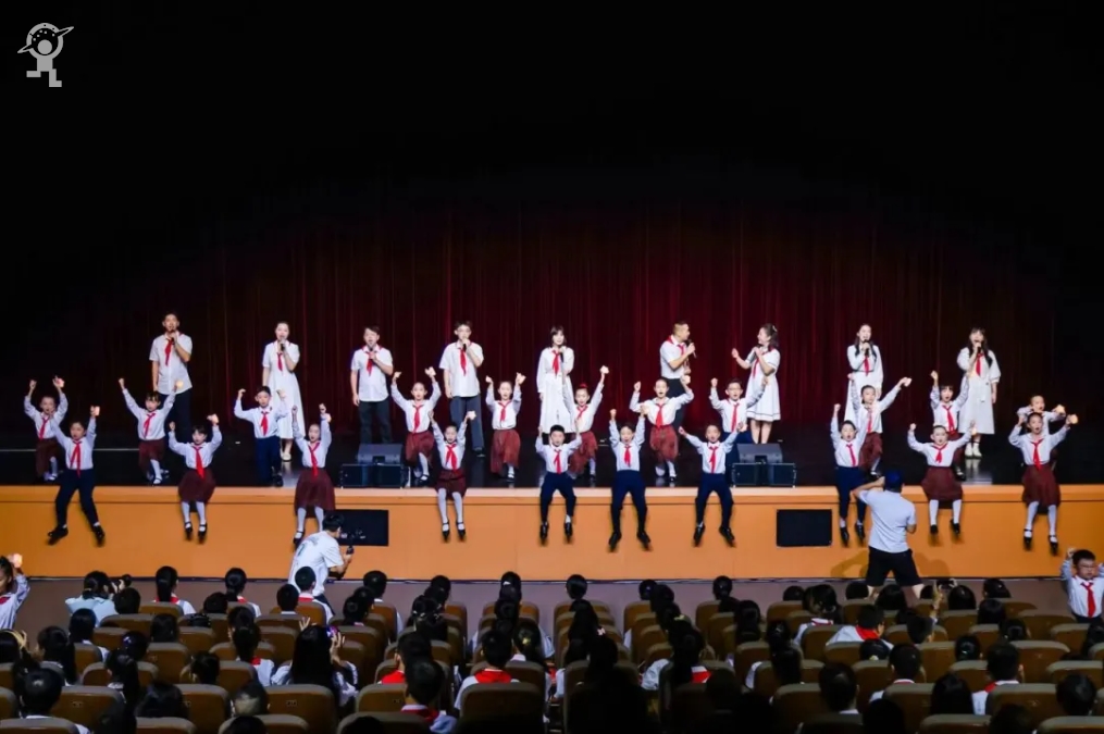 在激昂的乐曲声中,少先队员们齐声高唱《我们是共产主义接班人》,歌声嘹亮,眼神坚定,展现了他们作为少先队员的自豪感和归属感。