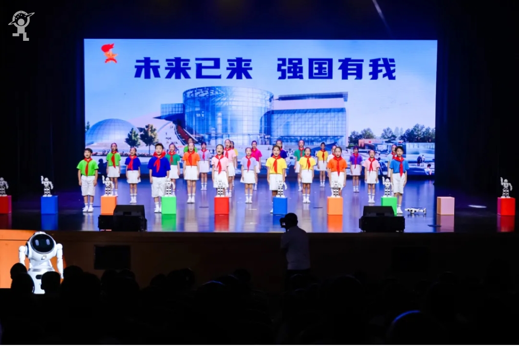 活动中进行了少先队员风采展示。南方科技大学教育集团(南山)实验一小少先队的辅导员和少先队员代表带来了情景剧《科耀未来》,通过生动有趣的表演,向在场的少先队员普及了人工智能的基本概念及其应用前景,激发了他们对科学的兴趣和未来发展的憧憬。