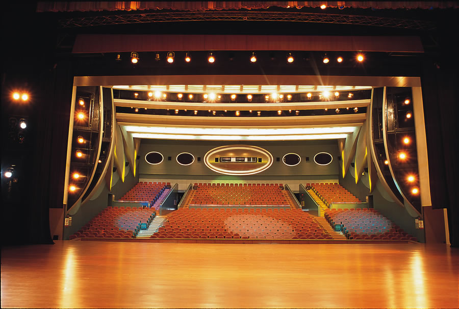 剧场舞台总面积约600 平方米,舞台区台深20米,宽27米,台口宽21.6米(较一般普通剧场宽4-6米),台口高9米。舞台前设有可升降乐池,乐池长20米,宽2.2-3.6米(可容纳60人乐队);舞台两边侧台面积分别为240平方米和120平方米。