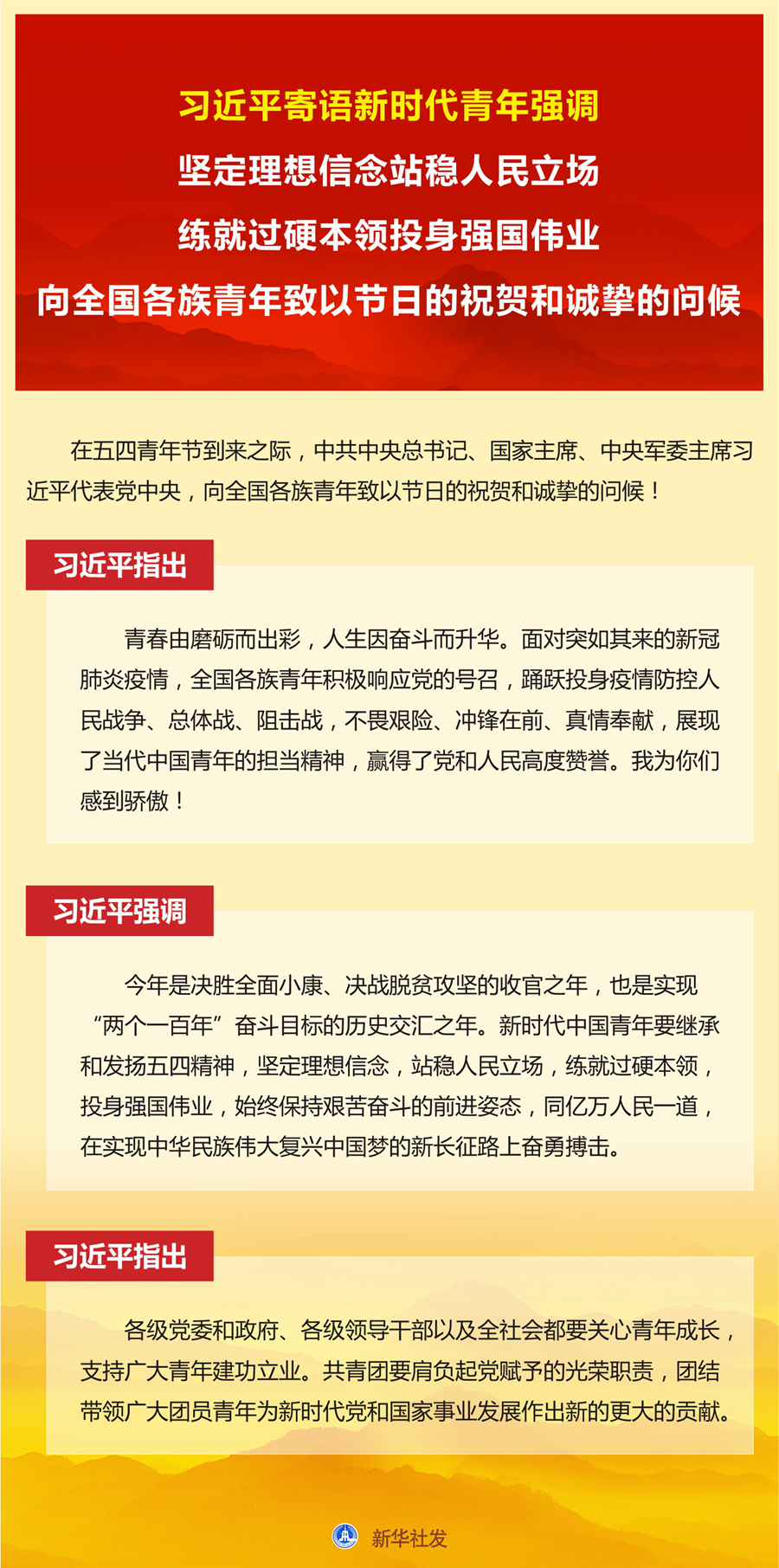 习近平寄语新时代青年强调 坚定理想信念站稳人民立场 练就过硬本领投身强国伟业 向全国各族青年致以节日的祝贺和诚挚的问候