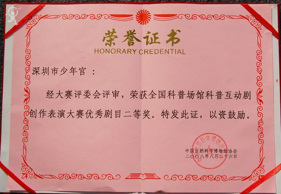 2008年4月6日第二届中国(深圳)中国科学生活博览青少年科普剧演出金奖