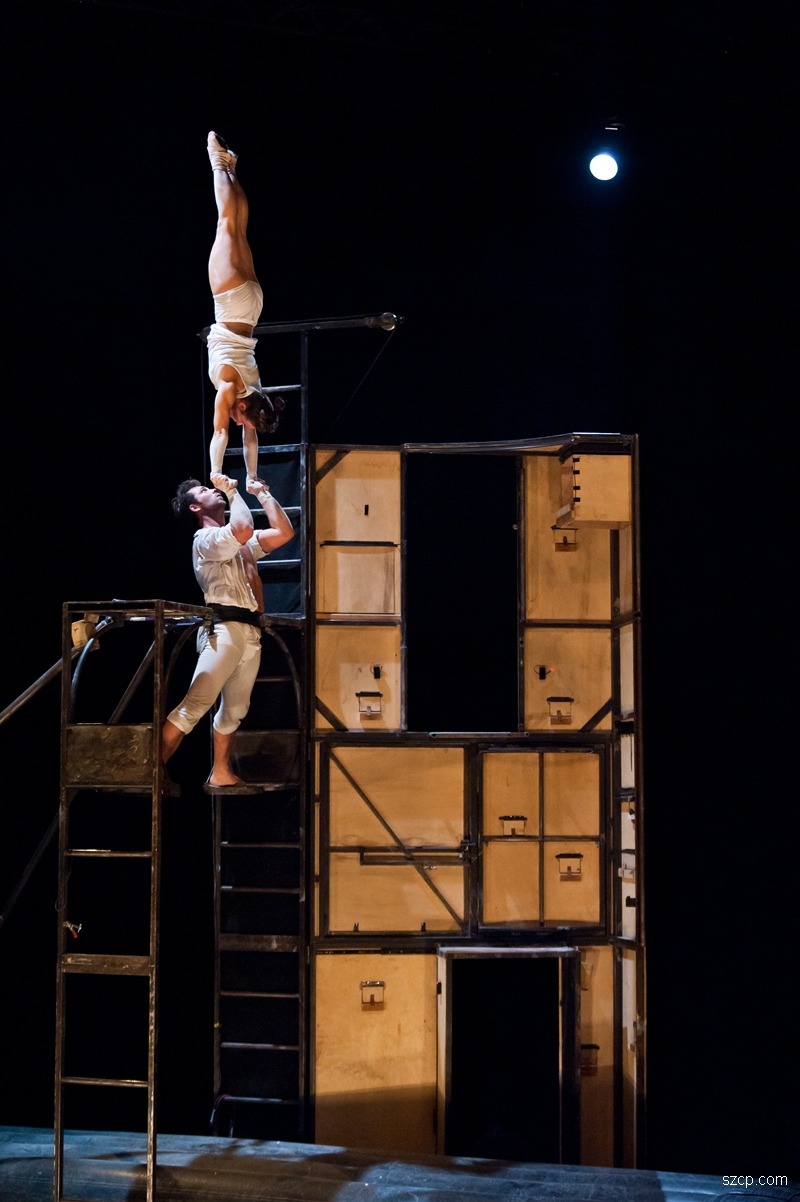 内容简介:Morosof剧团用一场民歌、摇滚和蓝调原创音乐伴奏下、介于戏剧和杂技之间的空中杂技演出让我们头晕目眩。一直在运动的人物,穿过一个巨大的木头柜子来来往往,带来不可避免的吸引力。
